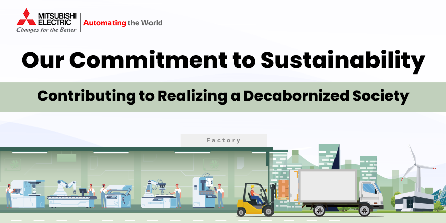As a manufacturer of automation products for factories, Mitsubishi Electric is capable of supporting sustainable manufacturing industries. We strive to assist customers in achieving sustainable manufacturing by providing Full Automation technology in Smart Manufacturing and various solutions that support energy savings. We also aim to address issues related to the reduction of Carbon Dioxide (CO2) emissions to realize environmental decarbonization.